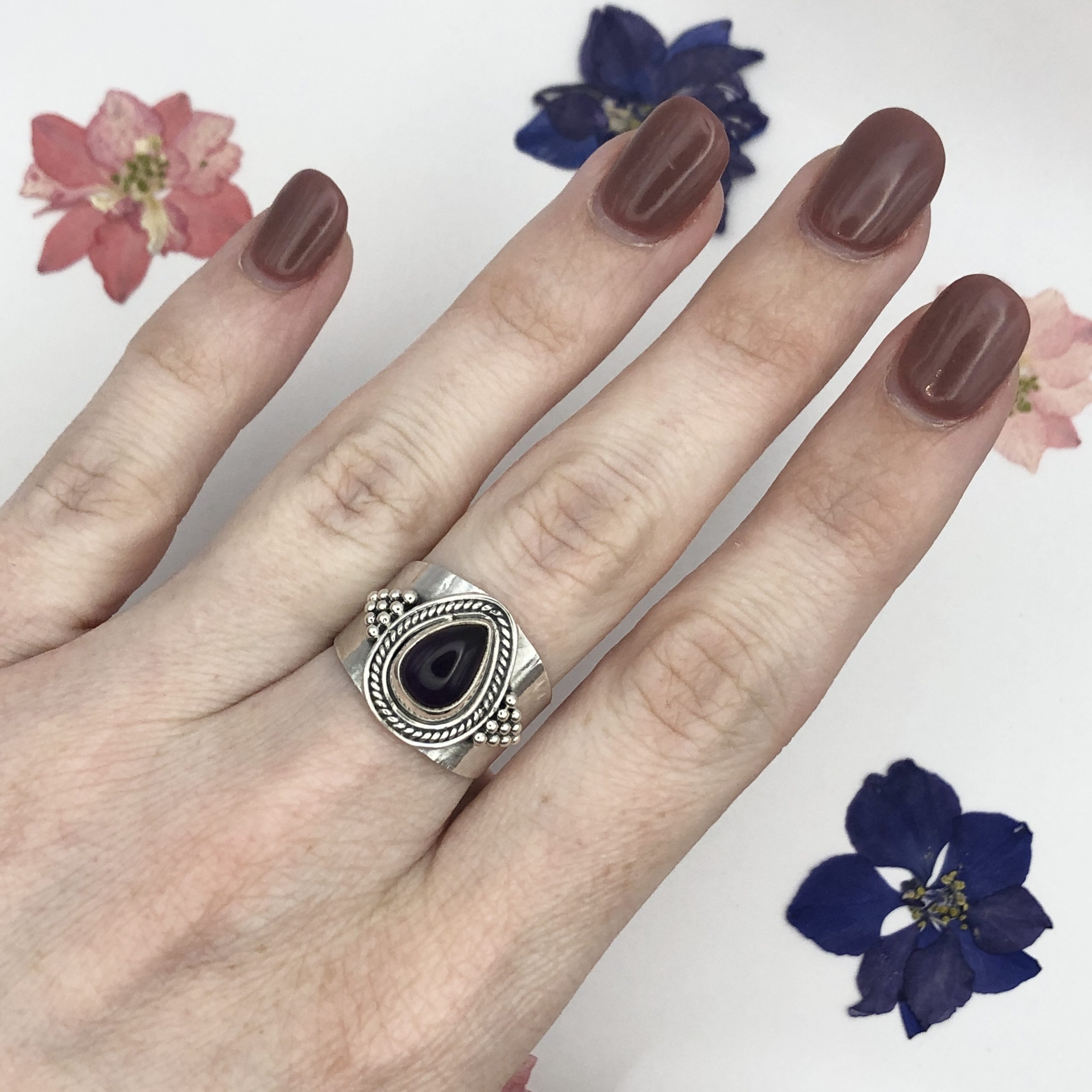 Amethyst Ring – Size 7.5 $42.00 Sterling Silver Out of stock SKU: 6552 Category: Jewellery Spread the love Related products Amethyst Oval Pendant $18.00 Flower Citrine Earrings $24.00 Moonstone Earrings $36.00 Moonstone Sun Earrings $28.00